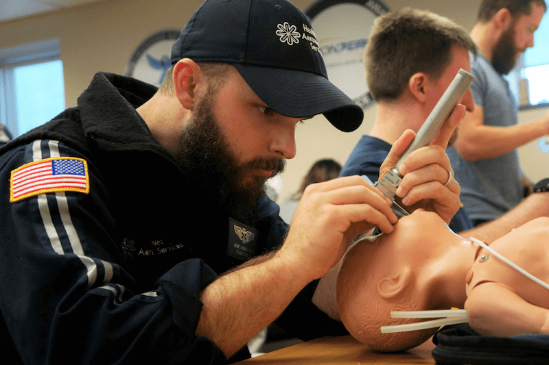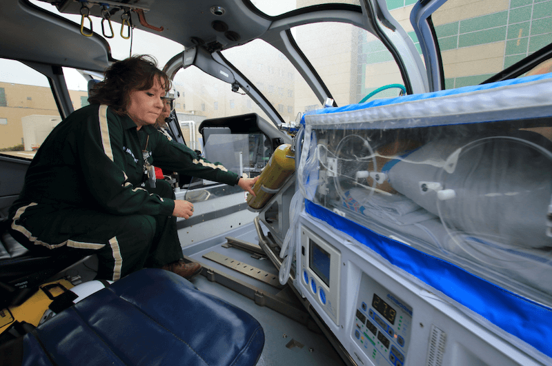 HealthNet Aeromedical Services medical transport teams are comprised of a flight certified registered nurse and flight certified critical care paramedic. Our clinicians must have at least three years of hospital intensive care, emergency department or 911 field experience and receive more than 450 hours of additional training before being cleared to serve aboard our aircraft.